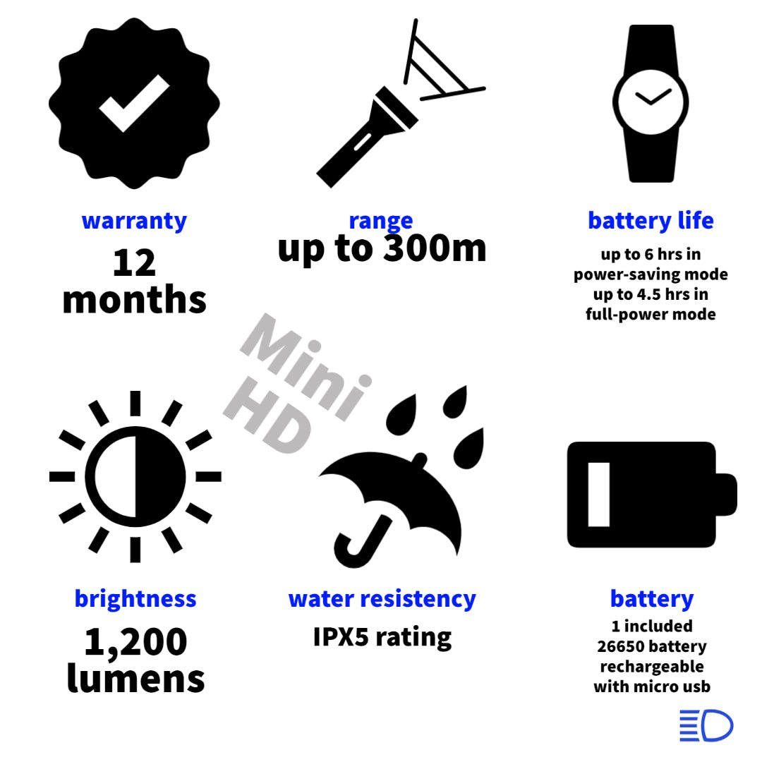 ✔️ Insanely bright LED light – 2000lm (1500lm for the HD Mini)